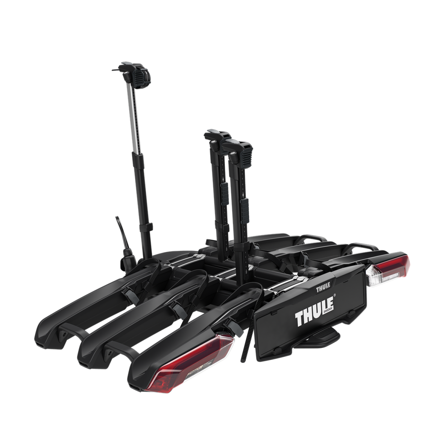 A premium easy-to-use bike carrier for your tow bar, that can carry 1, 2 or 3 bikes. Designed to accommodate a wide range of bike size, types and frame geometries including road bikes, racing bikes, ebikes, mountain bikes, gravel bikes, and bikes with fenders or pannier racks, making the Thule Epos 3 one of the very best bike racks available! Carry bikes up to 30kg with up to 1350mm wheel bases thanks to the strong construction and extra long wheel trays.