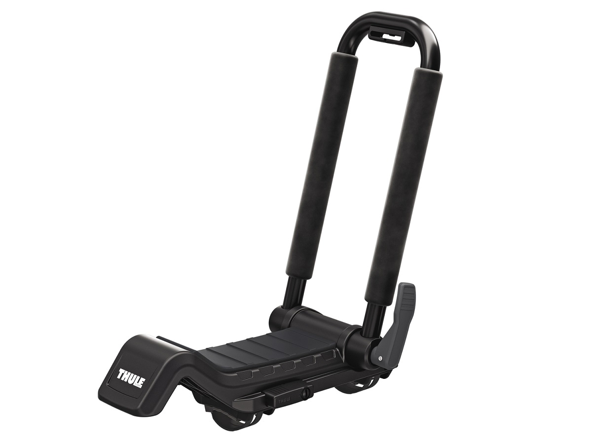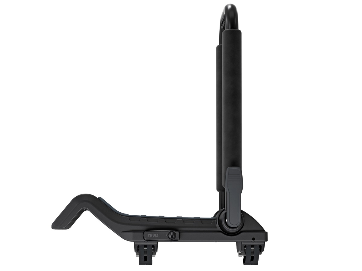 The Thule Hull A Port XTR is a J-Cradle for securely transporting a kayak in an upright position on a vehicle roof rack. With its stylish and sleek looks, the Hull-a-Port XTR carrier looks great on any car or van. This carrier fits to roof bars using two strong wrap-around straps and is compatible with popular roof bars including Thule SquareBar, WingBar, WingBar Evo, WingBar Edge and ProBar. The bars of the J shaped cradle are well padded to protect your kayak and hold it securely for transporting your kayak to and from the water. Suitable for touring kayaks, sea kayaks, white water kayaks and small-to-medium sized Sit On Tops.