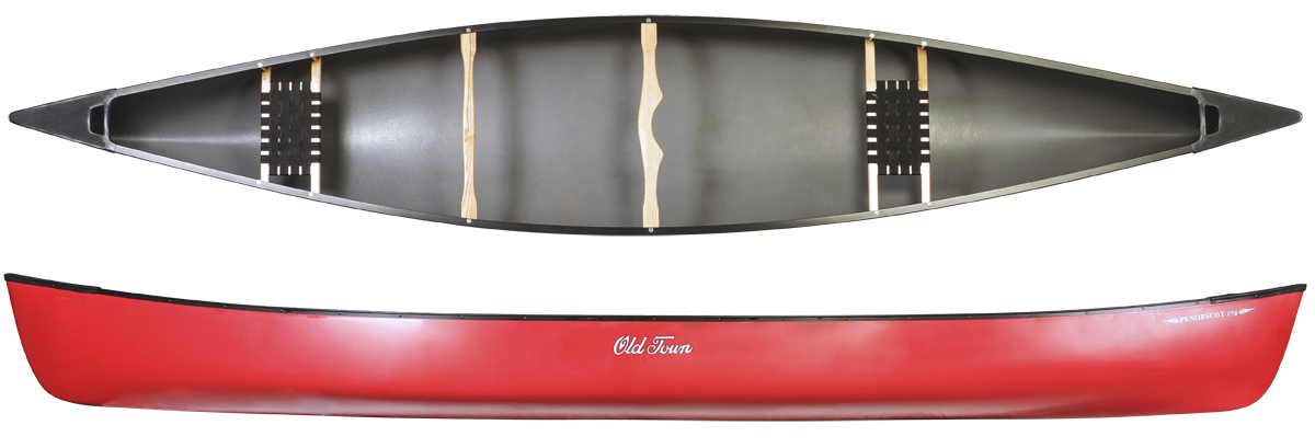 The Old Town Penobscot 174 is a large capacity canoe designed for touring on flat waters. A great canoe for those touring and exploring on inland waters such as lakes, canals, lochs as well as sheltered estuaries. The long waterline length glides well on smooth waters, yet the sharp bow will happily punch through short choppy wind waves often found on large inland waters. The hull features extra width over other canoe models, providing increased stability. A sharp bow and stern profile provides excellent forward tracking and even when loaded up, the Penobscot will push along at a surprising rate. This is a perfect family canoe for two adults and two children, or for those planning extended canoeing trips with plnety of camping gear.
