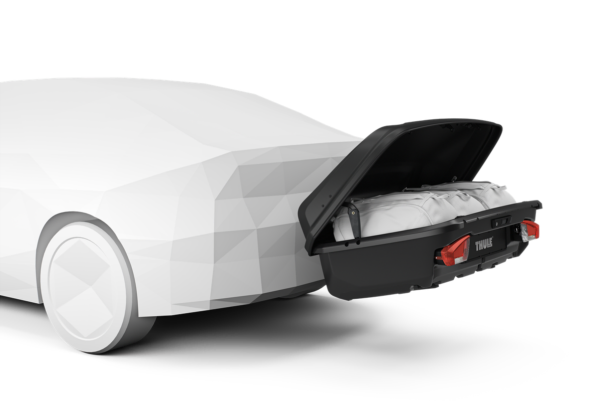 Add storage to the back of your vehicle with the premium Arcos M cargo box from Thule. Designed to mount to the Arcos Platform tow bar mount - sold separately or as a bundle with the Arcos box. Together, they make for a very slick and stylish way to carry luggage and equipment on the back of your vehicle. Featuring an aerodynamic wing shaped design that compliments any modern vehicle and causes minimal drag or wind noise as you drive. A great option over roof boxes for carrying extra cargo on electric vehicles to maximise your range!