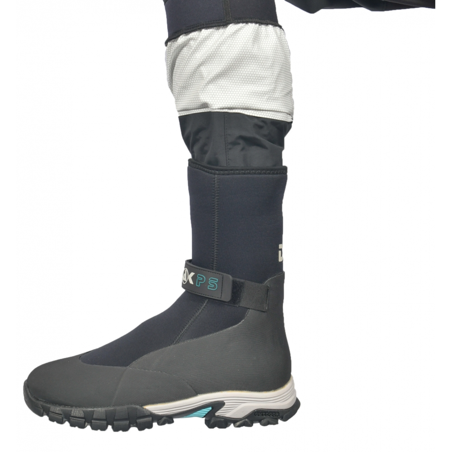 Designed for use in conjunction with dry trousers or dry suits with built-in fabric socks to keep your feet warm and dry when paddling. A front velcro strap combined with a high-ankle neoprene design helps keep sand and debris out of the boot for greater comfort.