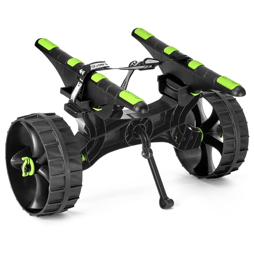 The C-Tug R features adjustable grippy hull pads that can be positioned to perfectly fit your craft. Once strapped down using the provided straps, your craft will be secure and stable allowing you to trolley along without hassle! The entire trolley dismantles in seconds and will fit into the front hatch on many kayaks. The C-Tug is constructed from robust plastic, rubber and stainless making it suitable for use in saltwater and freshwater environments. Supplied with puncture-proof Kiwi Wheels that are suitable for all-terrain. If you are regularly launching and retrieving on beaches, then check out the Railblaza C-Tug R with Sandtrakz Wheels for even easier trolleying on soft sand!