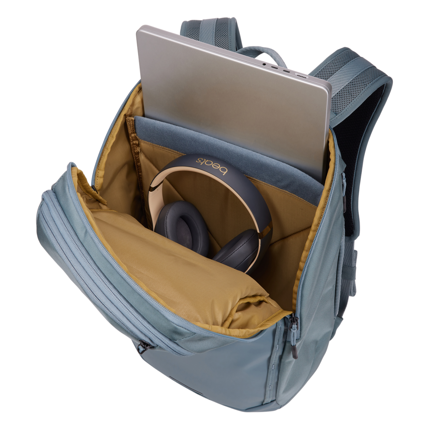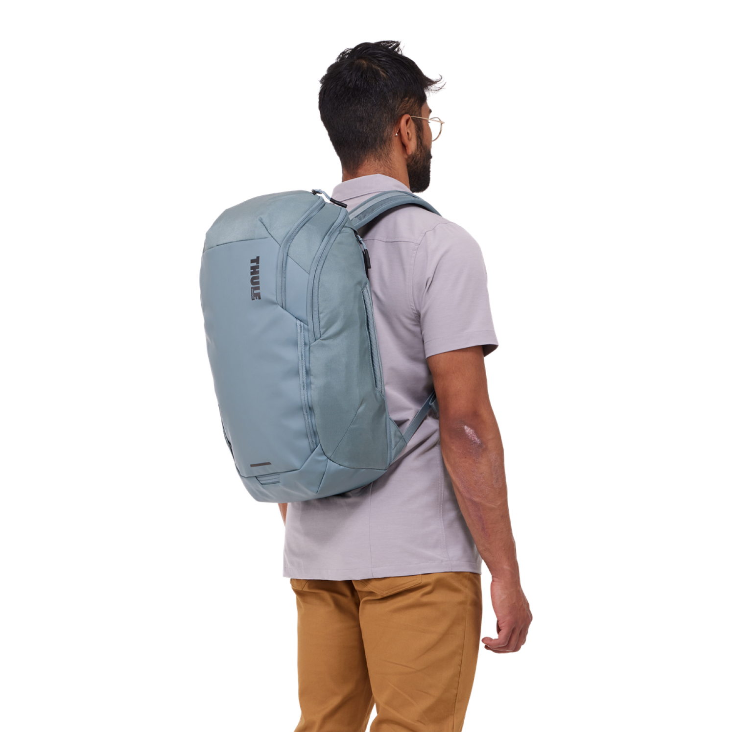 The outside of the backpack features a number of gear attachment loops and for those who cycle, there is a bike light attachment loop so you can stay visible whilst your ride. A slip-in bottle pocket is also included. There is even a luggage handle pass-through strap, allowing the Chasm backpack to be securely fitted to the extending handle found on rolling luggage bags such as the Thule Chasm Rolling Duffel, making travel through busy terminals easier.