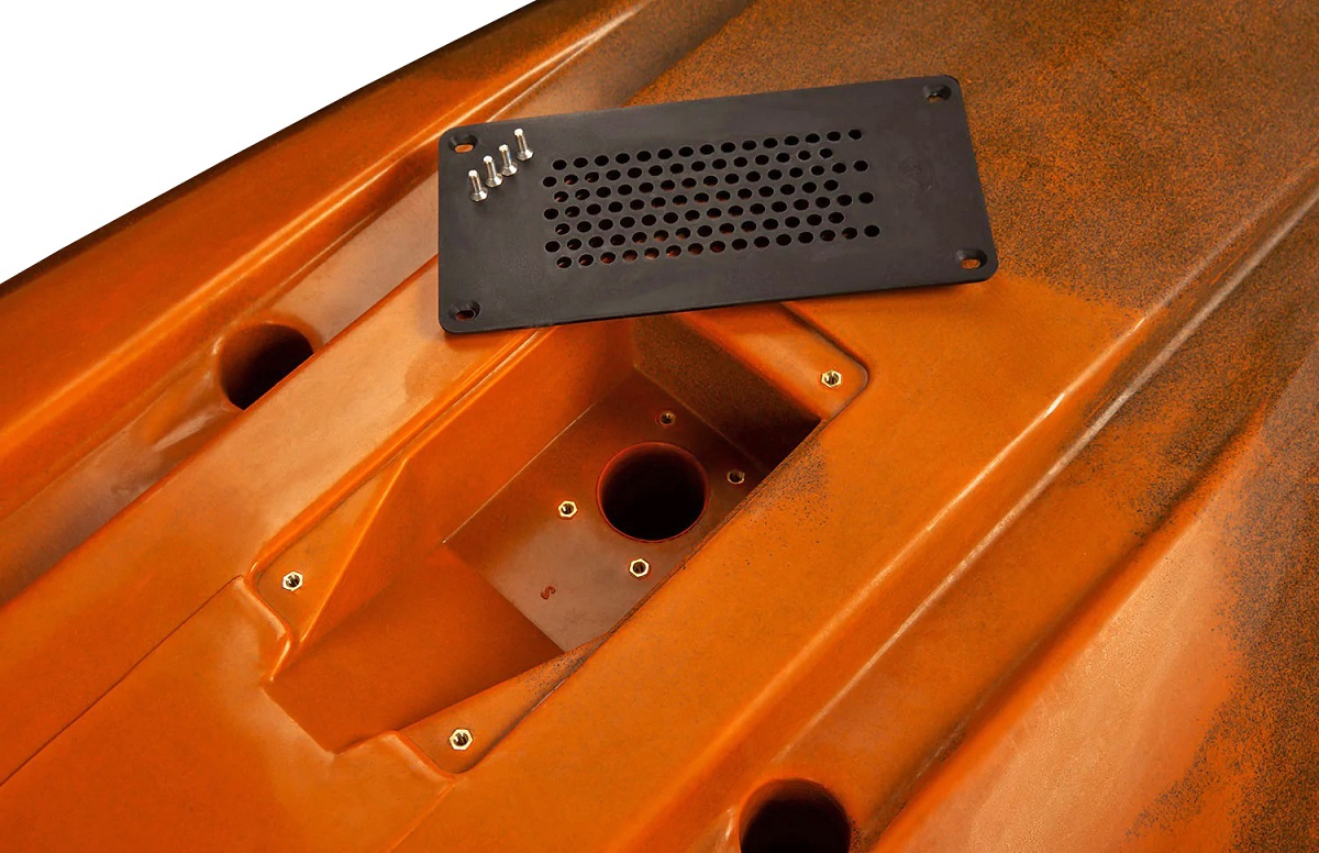A fish finder can easily be fitted thanks to the transducer recess with protective sheild found on the underside of the kayak. The transducer wire can be ran up to the tackle console to plug into a fish finder mounted on the console lid. Experience all day comfort in the Hero Seat. This is a framed mesh seat offering two height settings and can be tilted to suit your paddling position. Either side of the seat you will find two tackle box storage spaces (fits the Plano 3600 Medium Waterproof Tackle Boxes - sold seperately), with paddle holders also found either side of the kayak within easy reach.