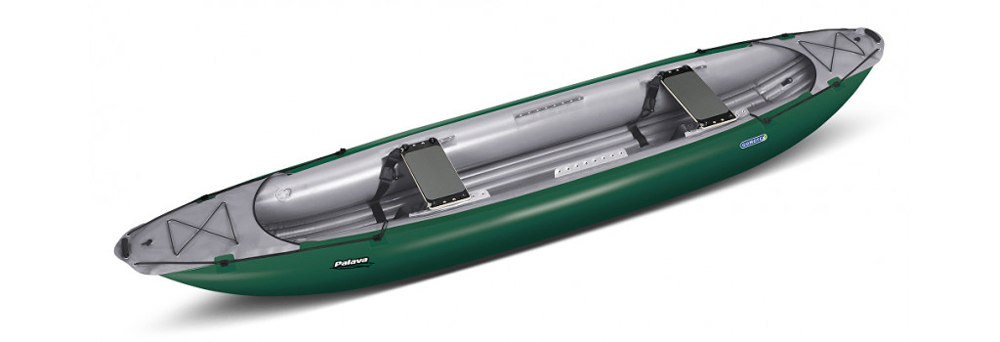 The Gumotex Palava is an inflatable Canadian 'open' style canoe that will carry one or two paddlers. It's 'sporty' hull design, and the tough Nitrilon construction, is great for flatwater touring on lakes and canals but it also performs very well on white water rivers up to a max. of Grade 2.