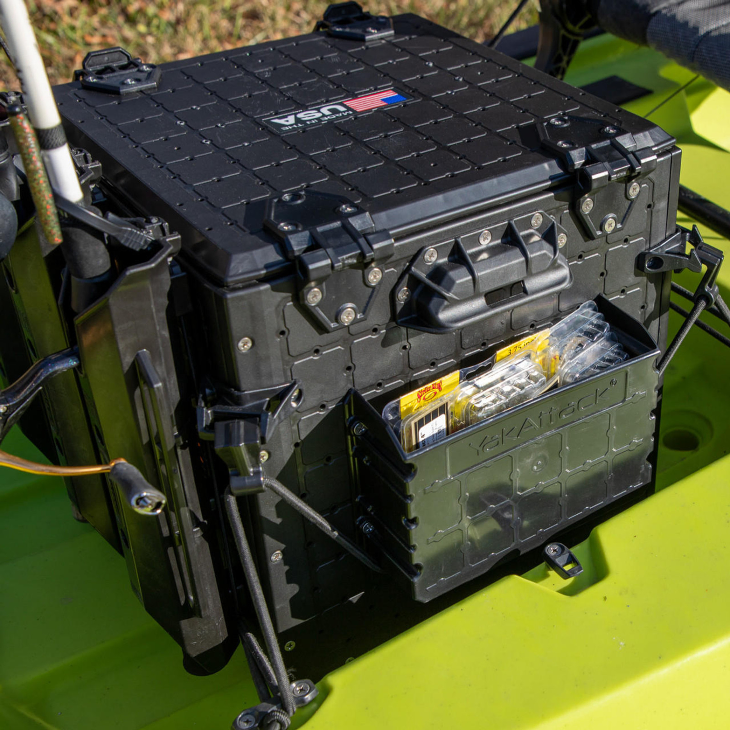 A handy storage pocket for the BlackPak Pro crates. Attaches to the side using the GridLoc Hole Pattern, so no drilling required. A great size for holding packets of lures and bait for quick and easy access on the outside of your crate.