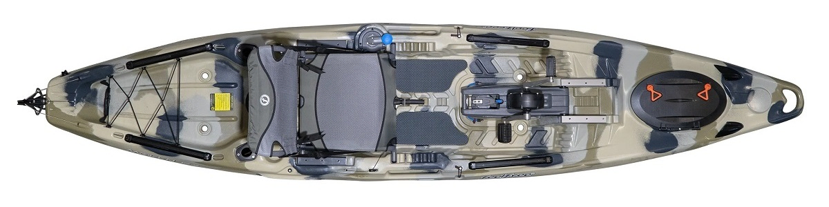 Sit in comfort all day long with the EZ Rider Seat. The seat can be moved forwards and back so that users of various heights can find the sweet spot for pedalling the Rapid Drive. The raised position of the seat makes for a drier ride as you pedal along too. Load up with accessories using the Uni-Track system fitted alongside the foot well and rear cargo well. These tracks allow you to quickly and easily add and remove accessories such as rod holders, fish finder mounts and more. Use either a Feelfree Uni-Track Mounting Plate or the Railblaza TracLoader StarPort to mount accessories to the Uni-Track.