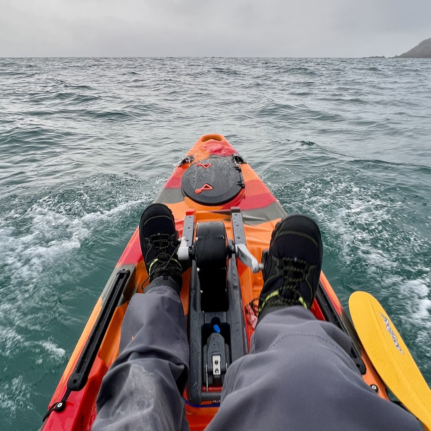The stable hull design will suit anglers wanting comfort when fishing sheltered inshore waters and inland lakes and waterways. On flat waters it is possible to stand up and fish, and standing pads are fitted in the foot well for extra grip underfoot. Two flush mount rod holders are fitted behind the seat as standard for carrying your rods as you pedal to your mark.