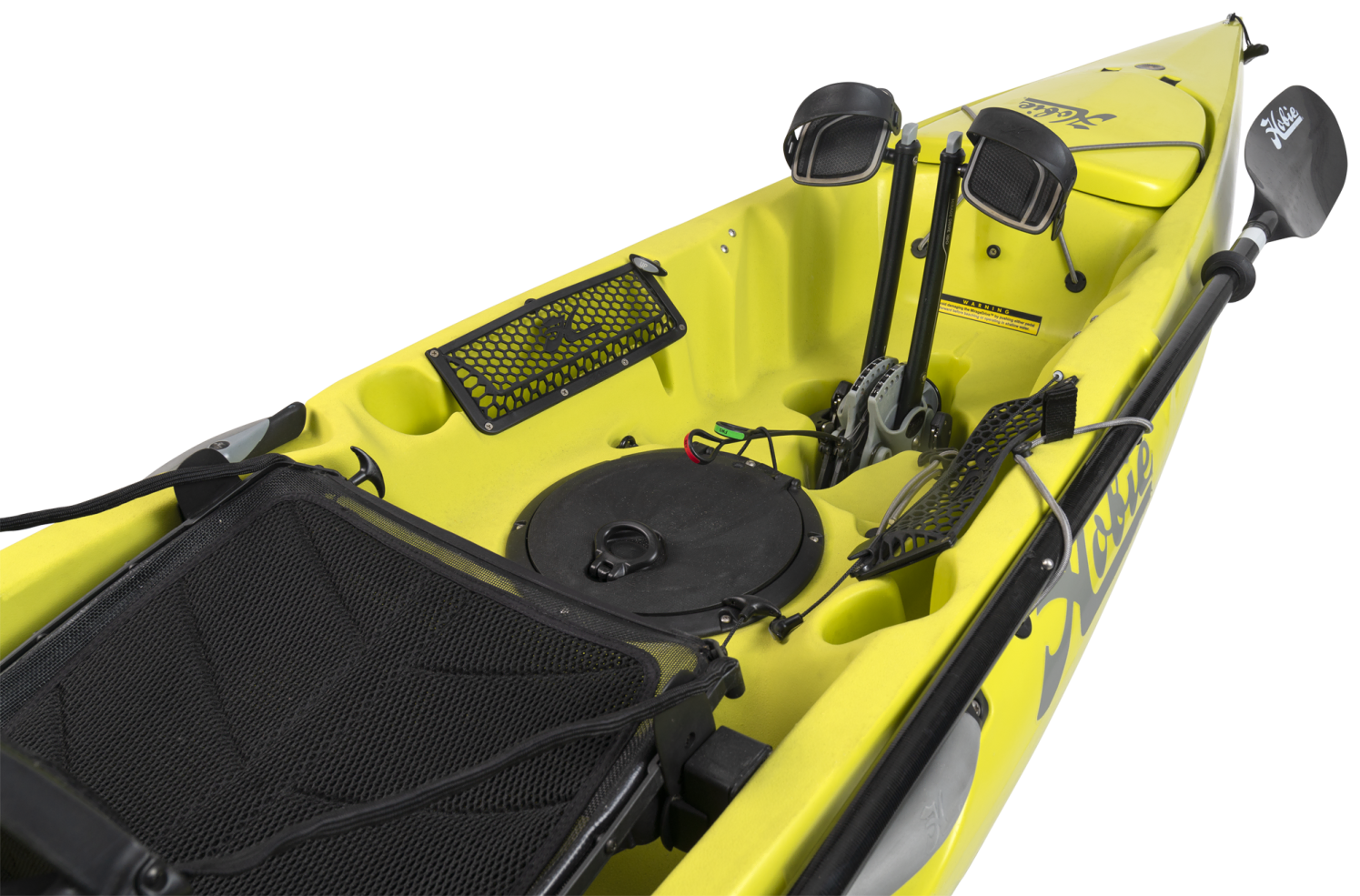 Twist and seal hatches are simple to use and are hinged so you will never have to worry about losing the cover. The hatches allow you to store equipment below deck. The Revolution 11 features one 8in hatch in front of the seat, another 8in hatch at the stern, offering access to the hull for gear storage and accessory installation. Hookless rubber side pockets are great for holding items you need close and handy like sun cream, snack bar or waterproof camera. The rubberised mesh prevents fouling by fishing hooks if used as a tackle storage space. Great for holding lures, jigs and tools.