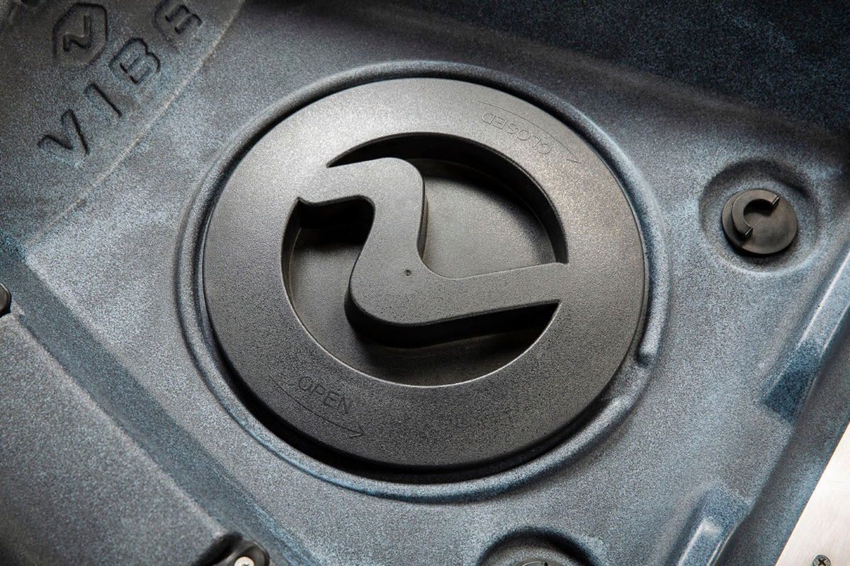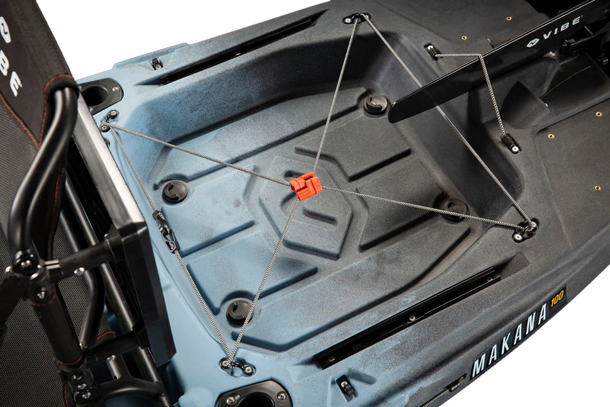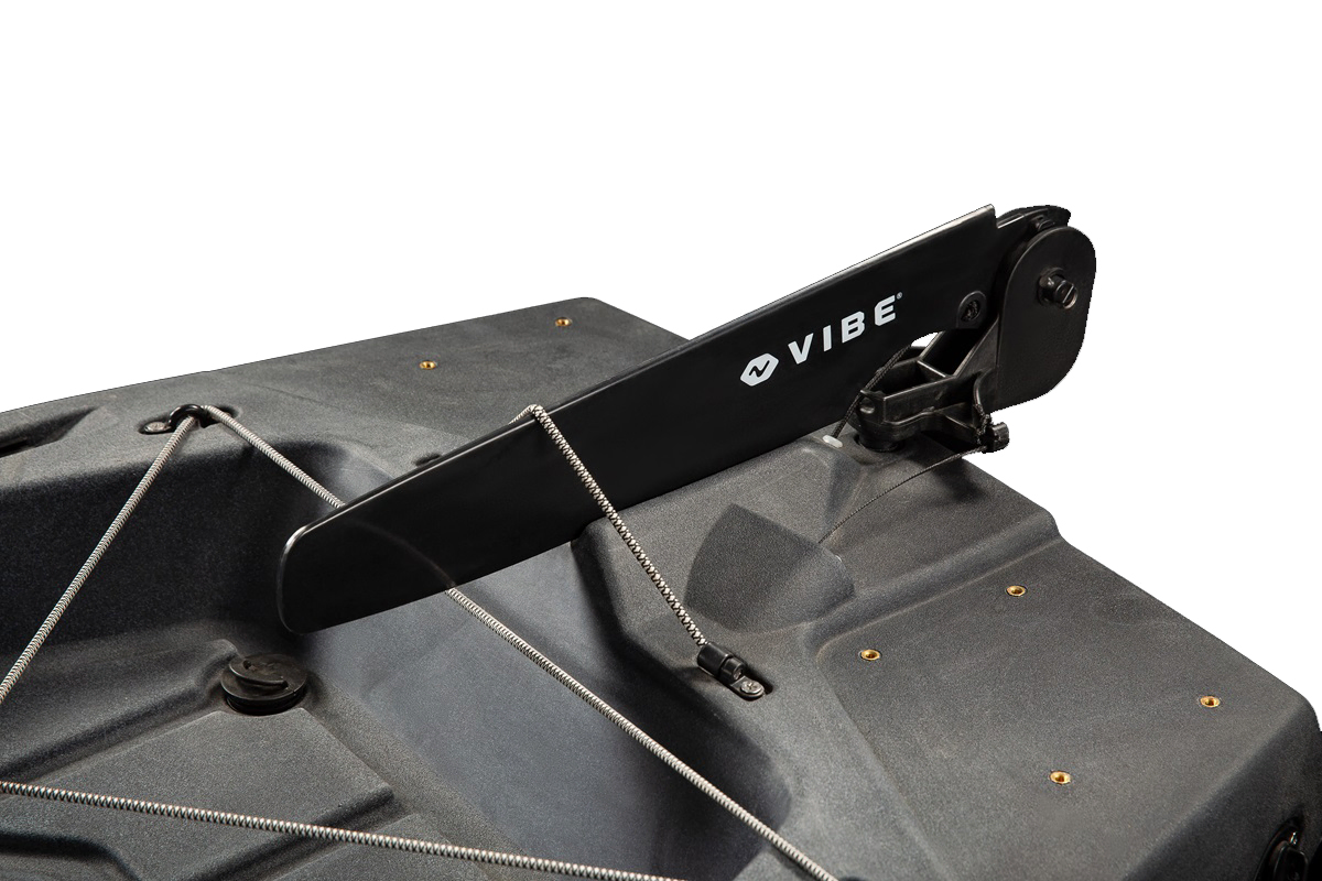The Vibe X-Drive slots into the hull and provide you with efficient propulsion via the flexible fins fitted to the drive system. Simply step back and forth on the pedals and you drive the Makana forwards with nimble speed. This is a big advantage for kayak fishing - you can cast or play fish whilst on the move. Combat the action of the wind or current, or simply troll lures at your leisure as you pedal along. Pedal drive kayaks have revolutionised kayak fishing, and the Makana 100 offers excellent pedal performance on a compact and nimble hull design. Steering is made easy thanks to the installed rudder system, with steering controls located beside the seat.