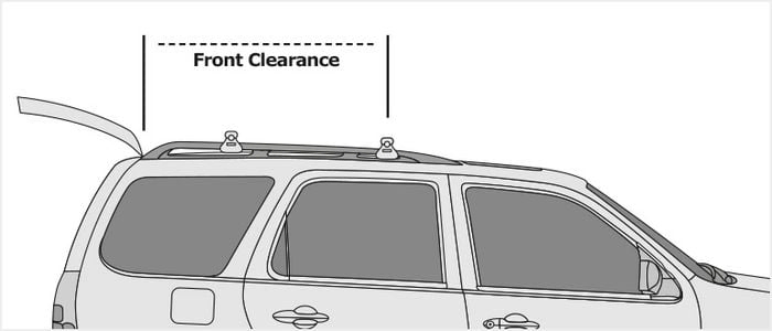 When mounted on your vehicle’s roof, a roof box may come into contact with your rear boot hatch. To determine which roof boxes fit your vehicle without contacting your hatch, measure the front clearance. This is the distance from your vehicle's front roof rack crossbar to the point where the roof meets the hatch (see image below).