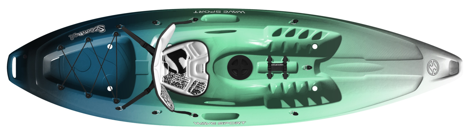 The Wave Sport Scooter X is a great all-round sit on top that will turn heads both on and off the water. Bespoke deck fittings, increased bow volume, increased footrest area for added comfort/grip, improved moulded handles and a re-positioned storage hatch for easy access are just a few of the welcomed updates in the new Wave Sport Scooter X. Also included is the 'WhiteOut' seating system - A padded seat with excellent back support The Wavesport Scooter X is comfortable to paddle as the moulded seating area provides good back support and plenty of legroom. It is easy to manage off the water with side mounted carry handles, and car-topping the Scooter is easy using a standard pair of roof bars.