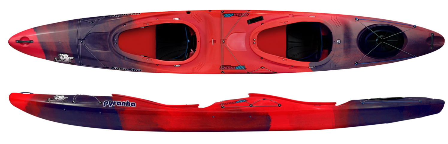 The Pyranha Fusion Duo offers all the versatility you get with the Fusion II crossover kayak, but in a twin cockpit design for tandem adventures! The Fusion Duo can comfortably carry two adult paddlers - perfect for fun day trips and those multi-day adventures, be it running a river and taking on rapids, or a trip along the coast on a sea kayaking adventure. The Fusion Duo is also great for parents wanting to take their kids along, with the added security and comfort that you are controlling the craft! Or perhaps you want to show friends who have never paddled before the excitement of kayaking!